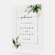 Dieses Begrüßungsschild mit tropischem Wasser, Blätter aus Palmen, Bananenblättern mit einem grünen Rechteck. Es ist perfekt für einen tropischen, Strand, Sommer oder Hochzeit in Urlaubsort.