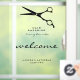 Begrüßen Sie die Öffnungszeiten Friseur Transparente Fensterklammer. Matching-Elemente verfügbar.