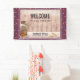 Herzlich willkommen auf unserem Hochzeitsbanner mit einem rustikalen Landmotiv. Eine alte rostende Milch kann mit einer hübschen orangefarbenen Blume an der Seite. Weiße und verblasste rote Pupien im Hintergrund Set vor einem schwachen Holzpaneel. Bunte Konfetti im Hintergrund. Personalisieren Sie mit den Namen des Ehepaares und dem Hochzeitsdatum.