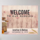 Herzlich willkommen auf unserem Hochzeitsposter mit einem rustikalen Landmotiv. Eine alte rostende Milch kann mit einer hübschen orangefarbenen Blume an der Seite. Weiße und verblasste rote Pupien im Hintergrund Set vor einem schwachen Holzpaneel. Personalisieren Sie mit den Namen des Ehepaares und dem Hochzeitsdatum.