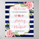 Begrüßung Schild Pink Floral Navy Streifen