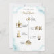 Herzlich willkommen bei Ihren Gästen mit dieser wunderschönen Karte mit eleganter Zeitleiste auf der Vorderseite und einer einladenden Botschaft auf der Rückseite. Zeitleiste mit Aquarellbildern in schönen goldenen Farbtönen. Sowohl vorne als auch hinten mit zarten, staubigen blauen Aquarellfarben mit dunklen Goldklecksen. Moderne handgeschriebene Kalligrafiedetails in Gold. Möglichkeit, Timeline-Icon-Bilder zu "greifen und verschieben", um Ihre Veranstaltung durch die Auswahl weiterer anpassen Anzug.