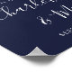 Entworfen, um mit unserer marineblauen Signature-Skript Hochzeit Sammlung zu koordinieren. Dieses elegante Willkommensschild mit seinen charakteristischen Stilnamen kann mit Ihren Hochzeitsdetails in schicken, weißen Schriftzeichen personalisiert werden. Entwickelt von Thisisnotme©