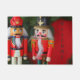 Zwei bunte und gut aussehende Nussknacker auf rotem Hintergrund