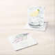 Hochzeitlicher Begrüßungs-Square Paper-Untersetzer mit elegantem, zarten Bouquet aus lila abstrakten Lilienbäumen und hellgrünen Blätter, pastellfarbenen Frühlings oder Sommersanft romantische Blumenlililien Bouquet. Süße Blume botanische Wasserfarbe und zeichnend Bleistift Malerei. Niedliche Blumenblüte Botany Wedding Welcome Square Papier Untersetzer. Soft Lila Lilies Collection.