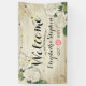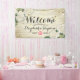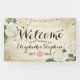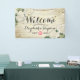 Begrüßung Begrüßungsbanner Vorlagen - Elegantes Drehbuch mit Weiß Hydrangeas Blumen- und Streichleuchten auf rustikalem Weißen Holzhintergrund. Ein perfektes Design für Ihren großen Tag! Alle Textstile, Farben, Größen können an Ihre Bedürfnisse angepasst werden.