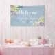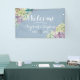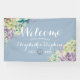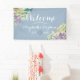 Hochzeitswillkommen Banner Vorlagen - Elegante, schöne Wasserfarbe Sukkulente Pflanze auf blauem Hintergrund. Ein perfektes Design für Ihren großen Tag! Alle Textstile, Farben, Größen können an Ihre Bedürfnisse angepasst werden.