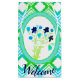 Besondere Anlass Begrüßungsgeschenktasche mit marineblau blumengeschmücktem Design in aquamarin- und kalk-grün, weißer Hintergrund kann auf jede Farbe umgeschaltet werden, und Begrüßungstext kann auf jede Nachricht oder Text entfernt personalisiert werden.