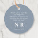 Beginnen Sie Ihre Hochzeitsgeschenke mit unseren Begrüßungstags Dusty Blue und White Wedding Monogram Welcome Bag oder Basket Favor, wo klassische moderne Schrift zeitlose Eleganz für eine Touch von Eleganz trifft. Die mit viel Liebe zum Detail gestalteten Vorzüge verleihen dem Gast einen dezenten Charme und eine schlichte Eleganz, perfekt für Paare, die eine minimalistische Ästhetik mit einem Hauch von Eleganz suchen. Die dustige blaue Farbe, gepaart mit unberührtem Weiß, schafft eine weiche und ruhige Kulisse, die jedes Hochzeitsthema oder Dekorstil wunderbar ergänzt. Diese Tags mit elegantem und einfachem Monogramm-Design in modernem Schriftsystem tragen zu einer personalisierten Touch Ihrer Begrüßungstaschen oder Körbe bei, sodass sich jeder Gast ganz besonders fühlt. Ob Sie die Gäste in Ihrem Hochzeitshotel willkommen heißen oder sich für ihren Genuss wohlfühlen, diese Tags dienen als stilvoller Akzent, der die Präsentation Ihrer Geschenke insgesamt verbessert. Die vielseitigen Geschenketiketten eignen sich für eine Vielzahl von Einsatzmöglichkeiten, von der Anbringung an Geschenktüten bis hin zur Verzierung von Willkommenskorben oder Briefen. Ihre zeitlose Anziehungskraft sorgt dafür, dass sie von Ihren Gästen noch lange nach dem Feiern geschätzt werden und als wunderschöne Erinnerung Ihres besonderen Tages dienen. Begrüßen Sie Ihre Gäste stilvoll und raffiniert mit unseren Begrüßungstags Dusty Blue und White Wedding Monogram - eine klassische und dennoch moderne Ergänzung zu Ihren Gastgeschenke Hochzeiten, die Ihren Lieben einen bleibenden Eindruck verlasse.