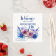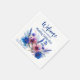 Eine einladende Serviette mit einer Nachricht, die lautet: "Willkommen bei der Hochzeitsfeier", die Wärme und Anerkennung für die Anwesenheit Ihrer Gäste ausdrückt. Unter der gemütlichen Botschaft werden die Namen der Paare elegant dargestellt, was der Serviette eine personalisierte Touch verleiht. Im unteren Teil der Anlage wird der Charme durch eine horizontale Blume aus der Kollektion Blauer Kornblumen und Lavendel Bliss mit zarter Blüte und duftenden Lavendel noch verstärkt. Diese künstlerische Blumenausstellung, kombiniert mit der einladenden Botschaft und den personalisierten Details, macht jede Serviette zu einem einzigartigen und unvergesslichen Sake. Es dient als angenehme Ergänzung zu Ihrer Hochzeitsfeier und schafft eine einladende Atmosphäre, in der Ihre Gäste an der Liebe und der Freude an Ihrem besonderen Tag teilhaben können.