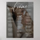 Elegantes und minimalistisches Plakat für eine Hochzeit oder jede Art von Veranstaltung. Willkommen ist in einem weißen Skript geschrieben, mit bitte finden Sie Ihren Platz unten. Dann drei Spalten mit Namen, wo Sie die Namen und Tischnummer Ihrer Gäste schreiben können. Personalisieren Sie das Programm mit einem Foto unter dem Text.