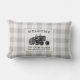 Schöne, rustikale Kissen aus Lumbalkissen mit Kunstwerken einer Vintagen Bauerntraktor-Silhouette mit Text-Lektüre "Willkommen in unserem Bauernhof" und Ihrem Familiennamen, etablierten Datum oder anderen gewünschten Text. Dieses einzigartige Design Erholungen auf einem karierten Druck in Grau und Weiß. Um mehr Designs wie dieses zu sehen, besuchen Sie bitte meinen Shop hier unter "Zazzle.com/Rustic_Charm". Danke.