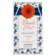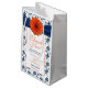 Orangefarbene gerbera daisy (gerber daisy) Blume, Band, und marineblau-weiße Blumenstaube personalisiert Hochzeitsgeschenk Tasche oder Polterabend oder Brautparty Geschenktasche. Ideal für eine rustikale, Land-, Scheune- oder Hütte-thematische Hochzeit oder Brautparty. Oder eine Hochzeit im Sommer, Herbst, Herbst. Personalisiert mit dem Namen der Braut und des Bräutigams und dem Hochzeitstag. Sie können es auch als Geschenktüten für die Geschenke der Brautjungfrau verwenden.