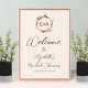 Eine schlichte, blumengeschmückte Rose aus Goldfolie, monogramm, leicht pfirsichfarbenes Begrüßungszeichen für Brautparty. Einfach mit Ihren Daten personalisieren. Modernes boho Begrüßungsschild für Brautparty editierbar, anpassbar, kalligrafisch handgeschriebenen Schriftart, einfach, elegant.