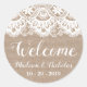 Begrüßungskleber für Burlap- und Spitzen-Hochzeite Runder Aufkleber