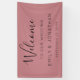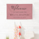 Begrüßungsnamen Datum Dusty Rose. 100% individualisierbares typografisches Design mit Ihren Namen und Hochzeitsdatum in modernem schlichten Stil und Willkommen an der Spitze in einem eleganten Drehbuch mit einem staubigen Rose rosa Hintergrund. Personalisieren Sie den Text einfach. Sie können auch auf weitere Einstellungen klicken, um Text- und Hintergrundfarben an Ihre Hochzeitsfarben anzupassen, sowie auf Wunsch auch Text und Größe anpassen.
