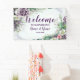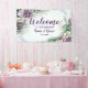 Begrüßungsfeier Lila Blumengrün Banner. Einzigartiges, schönes, stilvolles Design. Leicht personalisiert zu sein. Schriftart Stil, Größe und Farben können geändert werden. Matching-Elemente verfügbar.