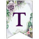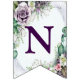 Begrüßungsfeier Lila florale Grünfolienjagdflaggen. Einzigartiges, schönes, stilvolles Design. Leicht personalisiert zu sein. Schriftart Stil, Größe und Farben können geändert werden. Matching-Elemente verfügbar.