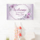Begrüßen Sie die Hochzeitsfeier Pink Blumenrübe Lila Banner. Einzigartiges, schönes, stilvolles Design. Leicht personalisiert zu sein. Schriftart Stil, Größe und Farben können geändert werden. Matching-Elemente verfügbar.
