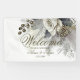 Begrüßungsfeier Silver Golden White Roses Banner. Einzigartiges, schönes, stilvolles Design. Leicht personalisiert zu sein. Schriftart Stil, Größe und Farben können geändert werden. Matching-Elemente verfügbar.