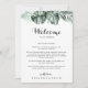 Dieser weiße, tropische Begrüßungsbrief ist perfekt für eine rustikale Hochzeit. Die Einrichtung besteht aus grünen Palmenbouquets mit hübschen weißen Blume. Personalisieren Sie die Front mit einer Begrüßungsbotschaft für Ihre Gäste und Ihren Namen. Personalisieren Sie den Rücken mit dem Veranstaltungskalender und anderen nützlichen Informationen.