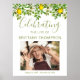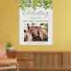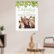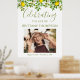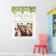 Begrüßungspposter mit grünem, wasserfarbenem Blattwerk, Zitrusfrüchten, einem Foto Ihrer Liebsten, ihrem Namen und ihren Daten.