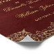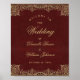 Dieses elegante Hochzeitsdesign mit Vintagem Ambiente, das für eine Hochzeit mit schwarzer Krawatte empfohlen wird, hat Vintage elegante barocke Golddekorationen an den oberen und unteren Rändern und einen bordeauxroten Hintergrund. Der gesamte Text kann personalisiert sein und hat eine goldene Farbe, die der Golddekoration ähnelt. Der Anlass "Hochzeit" und die Namen sind in einer eleganten kalligraphischen Schrift geschrieben, die Erholung in Kappen Die eleganten Golddekorationen auf Bordeaux stammen aus einem Vintagen französischen Buchcover, das aus dem späten 19. Jahrhundert stammt und jetzt im öffentlichen Bereich von Nicolas Denis Derome (1731731-177999-199990) bekannt als Derome le Jeune, für ein Buch mit dem Titel "Gaspar Pergam Epistol".