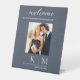 Begrüßungszeichen für das blaue und das weiße Foto Sockelschild