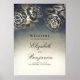 Vintage Blumenmarinade in Blau und Gold Hochzeitsempfang Plakat