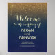 Begrüßungszeichen für Hochzeiten von Navy und Gold Poster