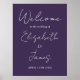 Dieses lila, elegante Drehbuch Hochzeitswillkommenzeichen kann mit Ihren Informationen in der schicken Typografie personalisiert werden. Entwickelt von Thisisnotme©