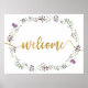 Lila Wildblume Rahmen mit "Begrüßung" in Imitaten goldenes Begrüßungszeichen für Hochzeiten, Babyduschen, Brautpartys, etc. Weitere Varianten finden Sie in der Sammlung.