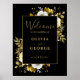 Dieses elegante, schwarz-goldfarbene, blumengeschmückte Begrüßungszeichen kann mit Ihren Informationen in der modernen Typografie personalisiert werden. Entwickelt von Thisisnotme©