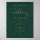 Dieses elegante smaragdgrüne und goldene Herz-Drehbuch Hochzeit Begrüßungszeichen kann mit Ihren Informationen in der schicken Typografie personalisiert werden. Entwickelt von Thisisnotme©