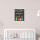 Robots Geburtstagsparty Begrüßungszeichen personalisiert mit Namenskind oder Text, Roboter-Darstellung in hellgelber, roter, grüner und blauer Farbe.