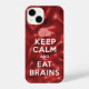 Zombie-Apokalypse? Kein Problem! Auf der Grundlage des Behalten Calm Memes steht in der Telefonzelle "Behalt Ruhe und esse Gehirne". Natürlich keine Krone, aber es gibt ein Gehirn - mit einem Biss vermisst! Zu Halloween, oder jedes Mal, wenn Sie einen Freund anrufen müssen, um das untote zu überholen.