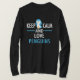 Behalt Ruhe und Liebe Pinguine Geschenk. Ein niedlicher blauer Pinguin, der mit lustigen Orangenfüßen tanzt und den fröhlichen Pop-Kultursatz verbreitete. Ein cooler tierischer Spaß vorhanden.
