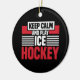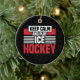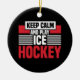 Hockey-Verzierung mit schwarzem, weißem und rotem Text, der Behalt Calm And Play Ice Hockey!