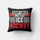 Hockey Thema werfen Kissen mit schwarz, weiß und rot, dass Behalt Calm And Play Ice Hockey!