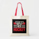 Hockey-Tasche mit schwarzem, weißem und rotem Text, die Behalt Calm And Play Ice Hockey!