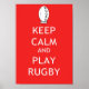 Ideal für Rugby-Fans und Spieler. Gebildet im Stil der bekannten britischen WW2 "Keep Calm and Carry On" Propagandaposter; die Krone wird durch einen Rugbyball ersetzt und der Slogan lautet "Behalt Calm and Play Rugby".