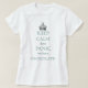 Ein spielerischer Spin auf den Satz Behielt Ruhe .. gepaart mit einem Vintage-Bild einer königlichen Krone. Der Ausdruck Keep Calm und Carry On stammt aus einem Propagandaposter, das 1939 von der britischen Regierung zu Beginn des Zweiten Weltkriegs produziert wurde und die Moral der britischen Öffentlichkeit im Falle einer Invasion erhöhen sollte. Da nur eine begrenzte Anzahl dieser Plakate verteilt wurde, war die Phrase wenig bekannt. All dies änderte sich jedoch, als das Plakat im Jahr 2000 wiederentdeckt und von einer Reihe privater Unternehmen neu herausgegeben wurde und als Dekorationsthema für eine Reihe anderer Produkte verwendet wurde. Es gab nur zwei bekannte Beispiele für das Plakat außerhalb staatlicher Archive[1], bis 2012 eine Sammlung von etwa 20 Originalen von der Tochter eines ehemaligen Mitglieds des Royal Observer Corps in die Antiquitätenmesse eingebracht wurde