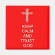 Dieses Design wurde vom britischen Poster des Zweiten Weltkriegs "Behalt Ruhe und mach weiter" Inspiriert und enthält ein weißes Kreuz und den Text "Behalt Ruhe und Vertraue Gott".