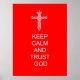 Dieses Design wurde vom britischen Poster des Zweiten Weltkriegs "Behalt Ruhe und mach weiter" Inspiriert und enthält ein weißes Kreuz und den Text "Behalt Ruhe und Vertraue Gott".