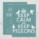 Das Design liest Behalt Calm und Behalte Tauben, im Stil des klassischen Posters. Tauben flattern um die Worte herum. Es ist ein schönes Design und macht perfekte Geschenke für alle, die Tauben Lieben und behalte.