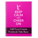 Behalt Calm und Cheer On, Rosa und Weiß Cheerleader Grafik macht Spaß und ist großartig für Mädchen und Frauen, die Teamgeist Liebe, Anleitung und Plünderung für ihre Lieblingsteam oder Wettkampf in Wettkämpfen in Wettkämpfen. Heller, lebhafter, hellrosa Hintergrund mit der Silhouette eines Cheerleader, der mit Pom-Poms in Weiß springt. Alle Designs Copyright © 2013 www.CuteComfy.com
