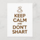 Funny Behalt Calm Parody Toilet Spaß ~ Behalt Ruhe und Don't Shart. Globe Trotters ist auf die Idiosynkratische Bildsprache aus der ganzen Welt spezialisiert. Hier finden Sie einzigartige Grußkarten, Postkarten, Poster, Telefonzellen, Sticker, Mousepads und vieles mehr.