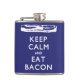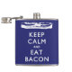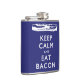 Behalt ruhig und esse Bacon. Bacon wird Sie beruhigen, Liebe Sie und behalte Sie... Gut, DU! Schmecken Sie den köstlichen Speck und machen Sie sich selbst aktiv. Basierend auf dem Zweiten Weltkrieg Poster "CALM UND CARRY ON". Weißer Text und Bild über einem navy blauen Hintergrund (#000080 Hex Color).