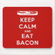 Behalt Calm und Eat Bacon. Das beste Fleisch aller Zeiten. phantastisch und! Sind die Speckhacker ruhig? Nein! Basierend auf dem Zweiten Weltkrieg Poster "CALM UND CARRY ON". Ein weißes Bacon-Bild und weißer "behalt ruhig" Text und auf einem traditionellen roten Hintergrund. "BEHALT CALM UND EAT BACON