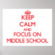 Benutzen Sie das Suchwerkzeug in meinem Geschäft, um andere Produkte der Mittelschule zu finden. Behalt Ruhe und fokussiere dich auf die Produkte der Mittelschule, die auf Hemden, Sweatshirts, Shirts für Kinder, Säugling, Aufkleber, Magneten und viel mehr Nahschulkleidung erhältlich sind, die vollständig an deine Bedürfnisse angepasst werden kann. Wenn Ihnen gefällt, was Sie sehen, verlinken Sie bitte zu meinem Geschäft (www.zazzle.com/shirtsforall) oder eine E-Mail an einen Freund.